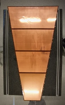 In an extensive R&D effort it was demonstrated that the specific requirements can be reached in an amplification scheme that employs four layers of GEM foils. The specific energy loss performance of the 4-GEM system, and hence the capability with which the TPC is able to identify particles, was demonstrated to be the same as for the existing MWPC chambers, and the stability against discharge is well suited for operation at the LHC in Run 3 and beyond. Figure 1 shows the GEMs of the first ever built detector segment of the TPC, which notably extends over more then 1.8 m and is in fact the largest GEM-based detector ever assembled. Our group at the TU München was involved in the project for which we built all full-size prototypes, ran a dedicated R&D program and participated in the production of the readout chambers and coordination duties.