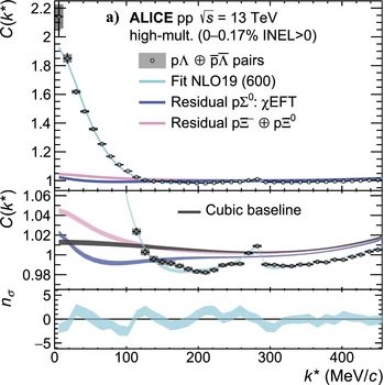The analysis on the p-Λ correlation function shown on the right was performed within our ALICE group and delivered the most precise measurements of the scattering parameters for this interaction. You can already see that the correlation function for p-p and p-Λ looks different. The reason is that a proton interacts differently with another proton or a Λ.
